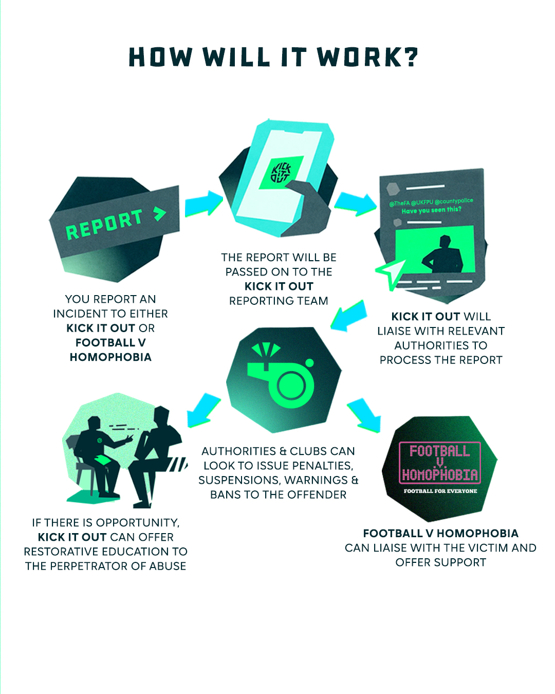 The relationship provides a route via FvH for reports to be made to Kick It Out’s dedicated team, who will liaise with the relevant authorities around the incidents raised.